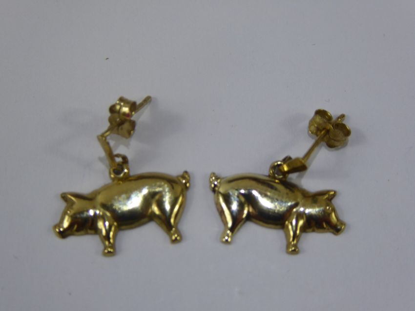 An Antique Rose Gold Fancy Link Chain, approx 44 cms together with a pair of 9 ct ear studs in the form of a pig, approx 19 gms.
