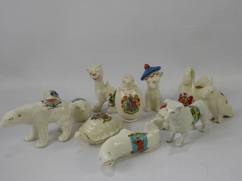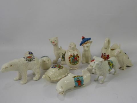 A Quantity of Crested Ware, including Arcadia, Goss, Grafton, Alexandra, Willow Art, Animal Interest: cat, tortoise, salmon, bear, kitten, eagle, chick x 2, snail, swan, collie and a turtle. (12)