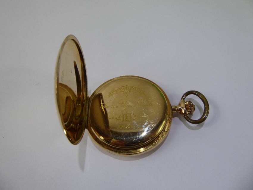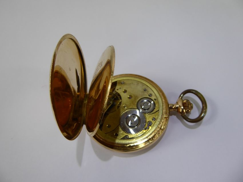 A 14 K Remontoir 15 Jewel Novelty Erotic Automaton Open Face Pocket Watch, stamped 144060.