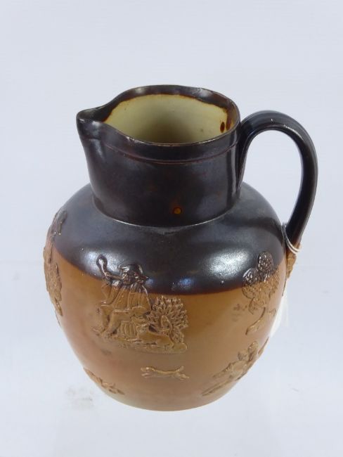 An Antique Lambeth Ware Treacle Glazed Harvest Jug, approx 17 cms
