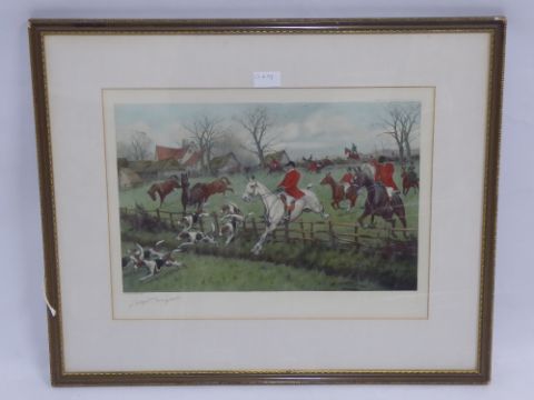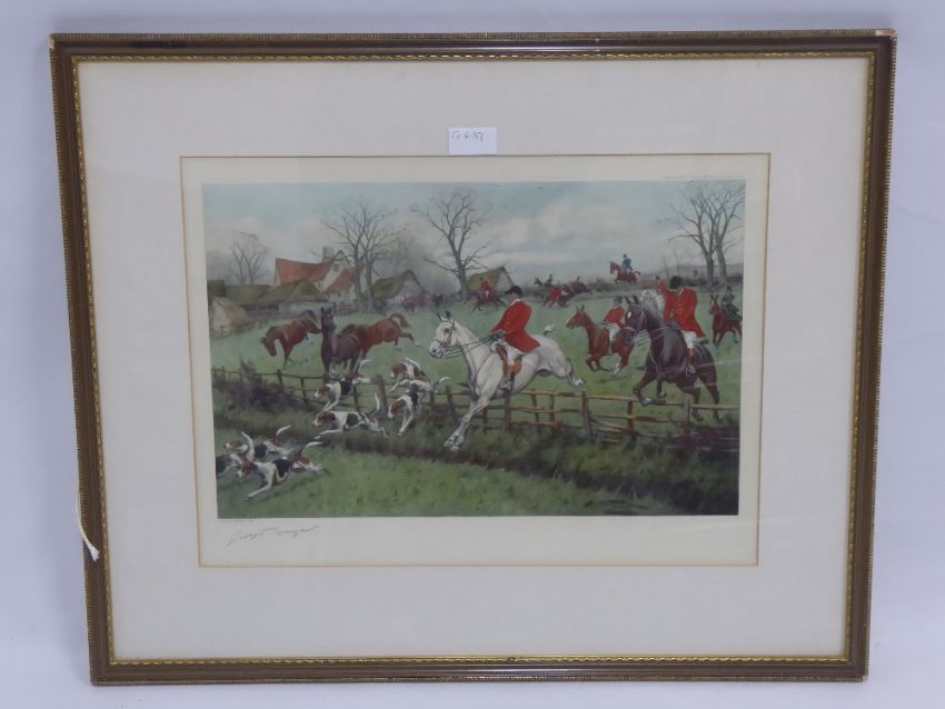George Wright, a hand coloured print depicting a hunting scene, approx 47 x 35 cms.
