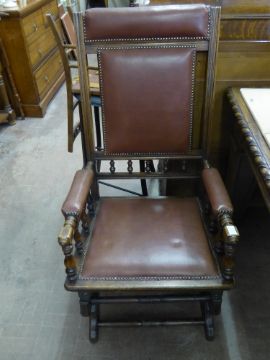 An Edwardian American Oak Rocking Chair, with burgundy leather seat and back.