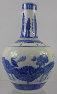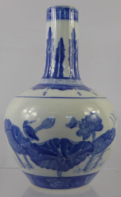 A Blue and White Chinese Vase, decorated with water lily, approx 34 cms