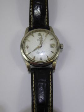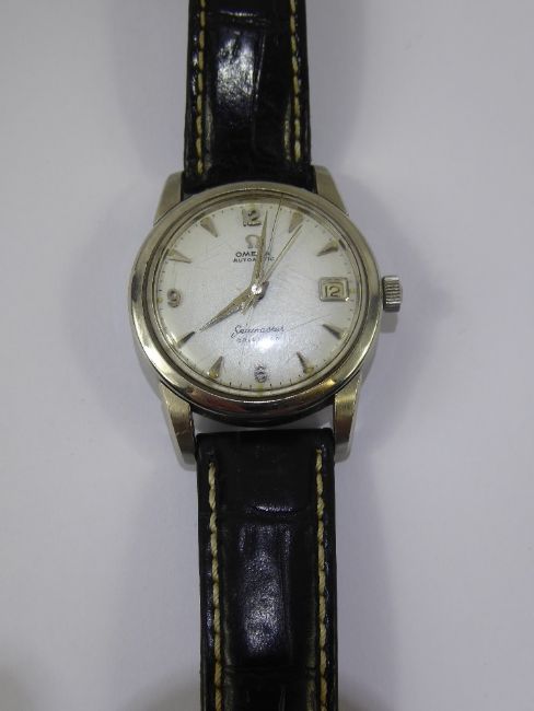 A Gentleman's Stainless Steel OMEGA Automatic Seamaster Calendar Wrist Watch, The watch having baton numeric dial with white face and date aperture, movement nr 17091224.