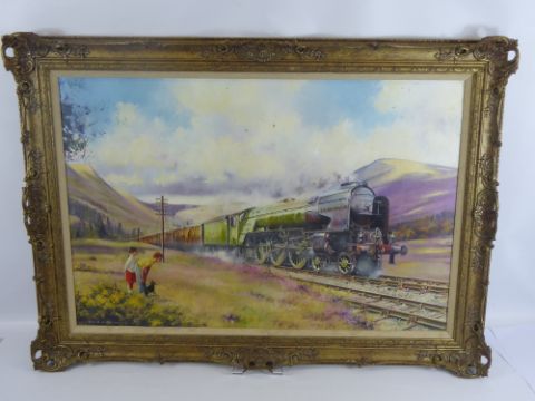 Paul S. Gribble, an oil on canvas depicting a steam locomotive travelling in the country, approx 90 x 59 cms, in gilt frame.