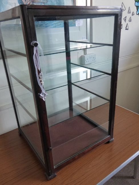 A Glass Apothecary/Chemist Display Cabinet, with three glass shelves, approx 51 x 51 x 83 cms.