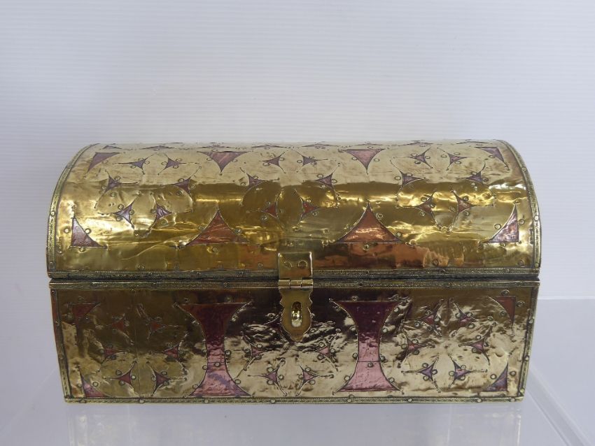 A Brass and Copper Domed Casket, the casket depicting floral spandrels, approx 26 x 15 x 13 cms.