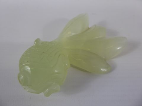 A Chinese Celadon Green Jade Carving of a Fantail Fish, approx 10 cms.