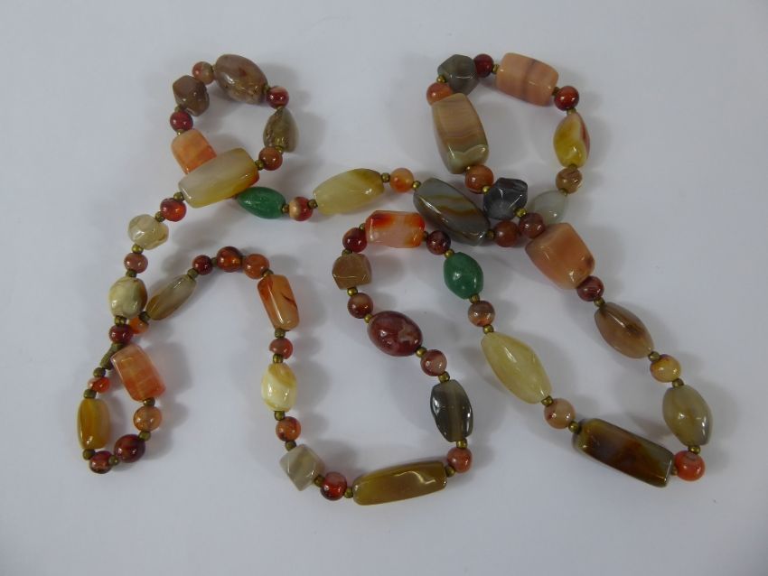 A Silver and Butterscotch Amber Necklace Set, including necklace, bracelet and clip earrings, together with a stone necklace.