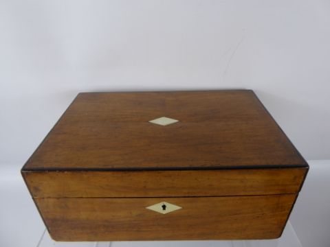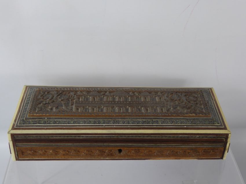 A Collection of Three Antique Boxes, including mahogany, walnut, together with middle eastern hand carved inlaid boxes. 48.