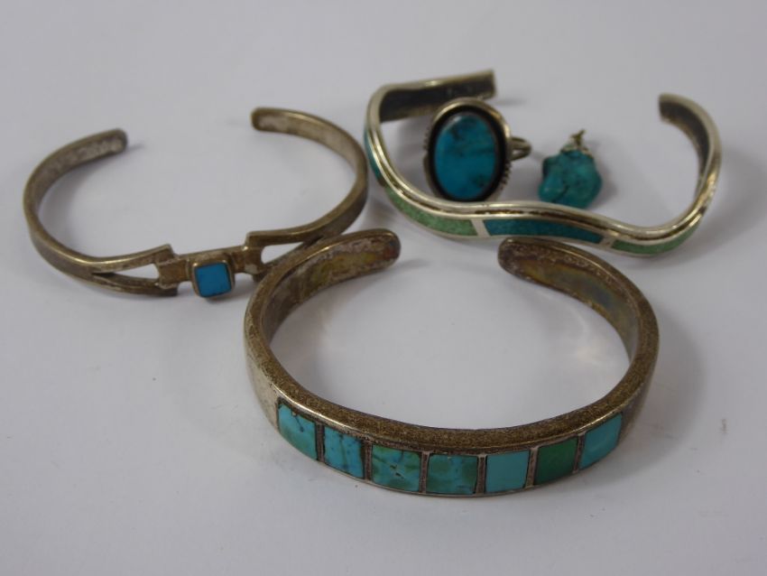 Miscellaneous Silver and Turquoise Jewellery, including necklaces, bracelets and ring, approx 90 gms