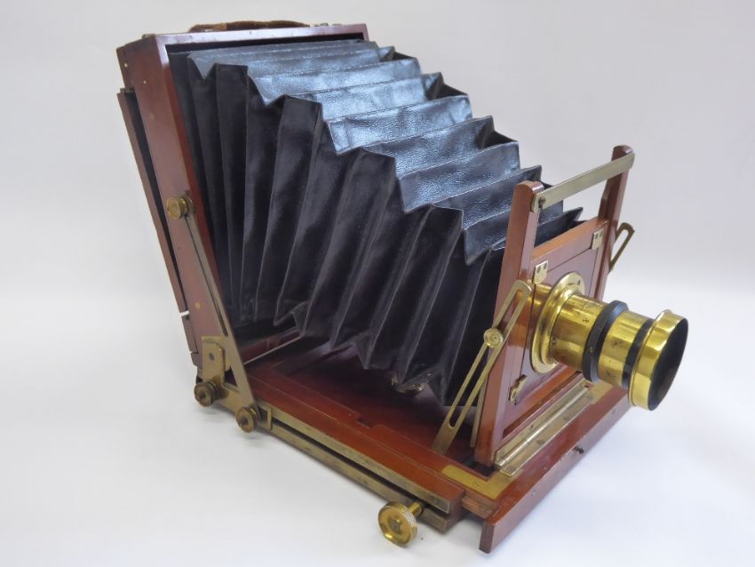 A 19th Century 'The Champion' Box Camera, with a small quantity of accessories including two lenses, plates and the original hood.