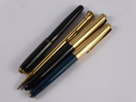 Two Vintage Gold-Plated Parker Ink Pens, together with one other and an Eversharpe propelling pencil. (4)
