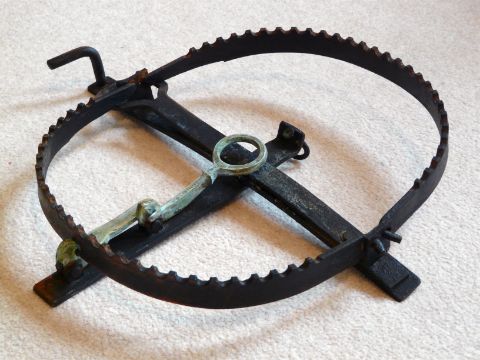 An Antique Cast-Iron Gamekeepers Trap,  iron 'egg' trap. The egg used as bait to lure an animal.
