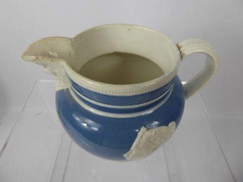 A Victorian Wedgwood Commemorative Jug, approx 14 cms together with a Chinese blue and white ginger jar and cover. (2)
