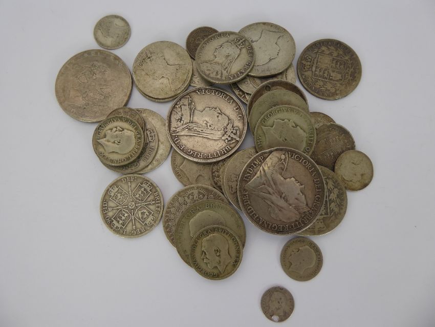 A Miscellaneous Collection of Silver GB Coins, including 1890, 1895 crowns, florins, half crowns and sixpences, total approx wt 380 gms.