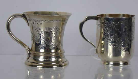 A Silver Christening Mug, Sheffield hallmark, dated 1897, mm Walker & Hall, approx 140 gms together with a silver christening mug, Birmingham hallmark, dated 1905 mm WB Ltd, approx 260 gms.