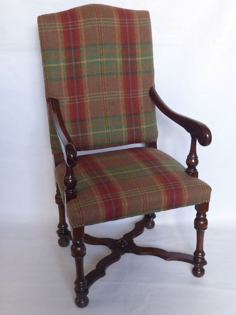 A Pair of Georgian Style Oak Armchairs, the chairs having tweed upholstery and on turned legs with stretchers.