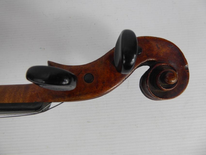 An Antique English Hand-Made Violin, with bow and accessories in a fitted case.