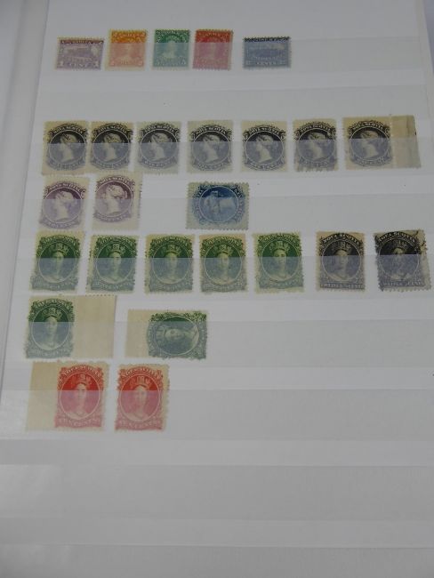 A Stockbook and Album Pages of Canada and Provinces, with some scarce early material, especially Newfoundland - eg four 1857/61 imperforate and two SG26 5c brown.