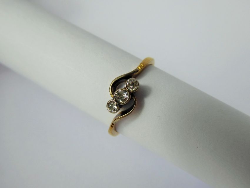 An 18 ct Hallmarked Yellow Gold Three Stone Diamond Ring, size N, approx 2 gms