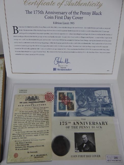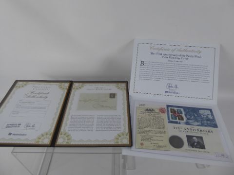A Westminster Philatelic Classic 1840 Penny Black Cover, limited edition and signed, together with Westminster 175 th Anniversary of the Penny Black, limited edition nr 995.