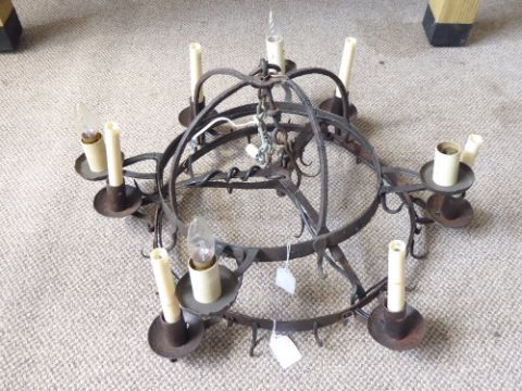 A Wrought Iron Game Keeper's Crown, converted for lighting. (1)
