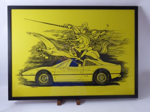 Roberto Pelillo Italian, Contemporary Lithograph of Ferrari, signed in pencil lower right, framed and glazed. International Ferrari Meet Monterey U.S.A. in 1984.