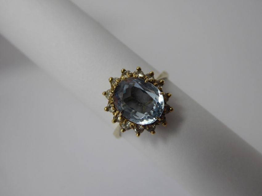 A 9ct Yellow Gold Hallmarked Blue Topaz Ring, the topaz 10 x 8 mm, size P, approx 3.8 gms.
