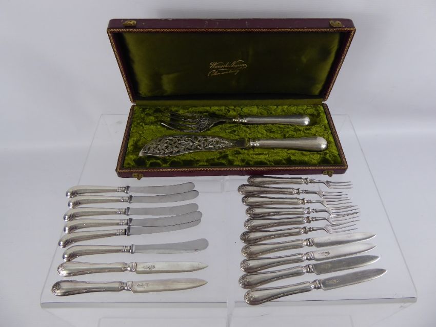 A Silver Handled Fish Slice and Fork, together with silver handled fruit knives and forks.
