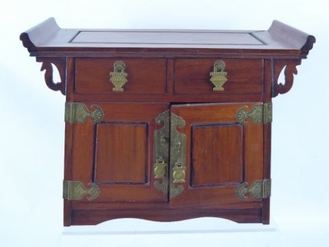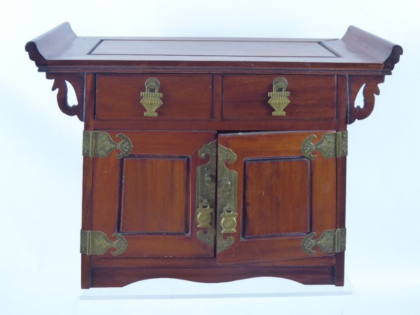 An Oriental Teak Jewellery Box, in the form of an altar, approx 25 x 18 x 26 cms.