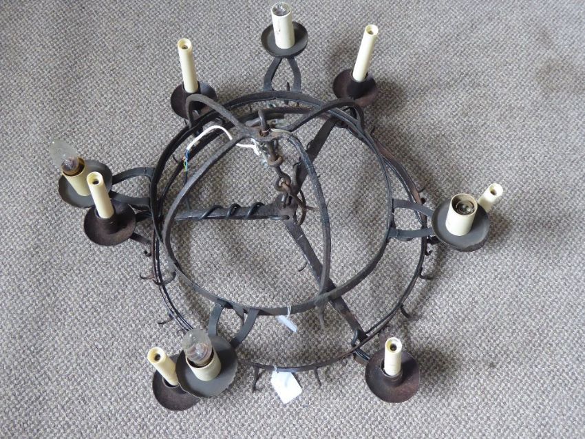 A Wrought Iron Game Keeper's Crown, converted for lighting. (1)