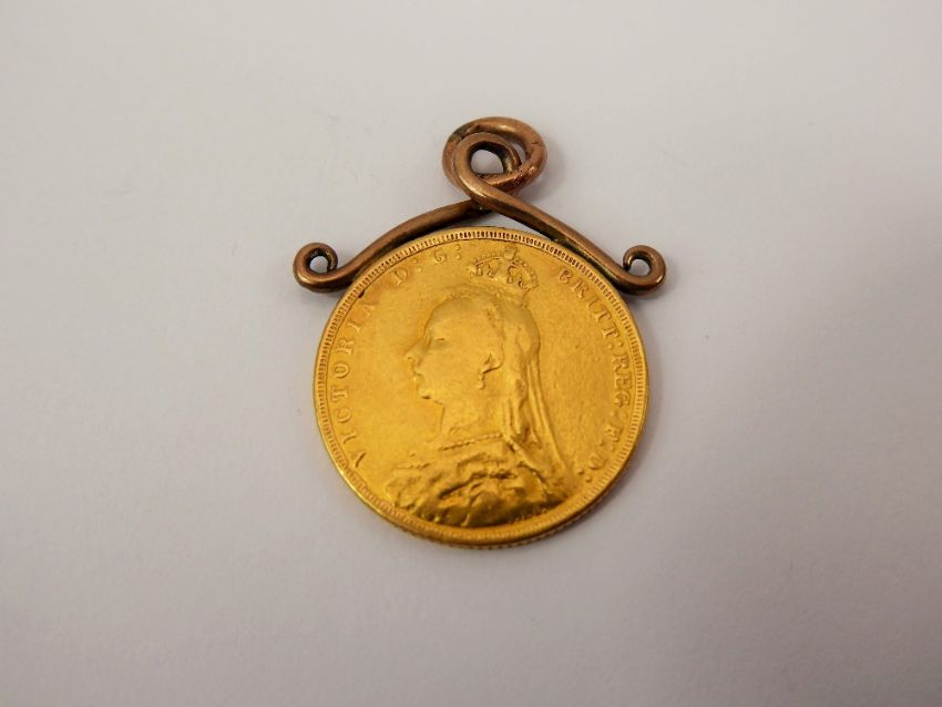 1888 Queen Victoria Gold Full Sovereign, on 9 ct mount, approx 9.2 gms