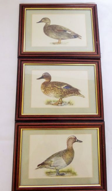Three Vintage Prints of British Ducks, framed and glazed, approx 15.5 x 24 cms (io).