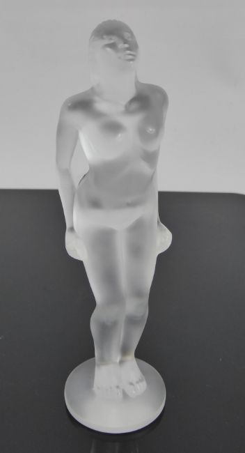 A Lalique Frosted-Glass 'Feminine Nude' Bonnet Ornament, approx 20 cms.