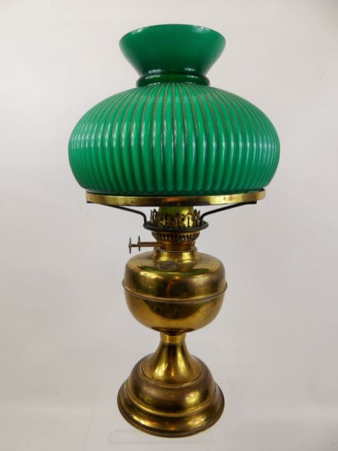A Victorian Brass Oil Lamp, with green fluted shade, approx 50 cms.