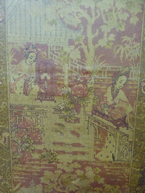 Three Vintage Chinoiserie Hessian Room Panels, for decorative purposes, each panel measures approx 250 x 50 cms