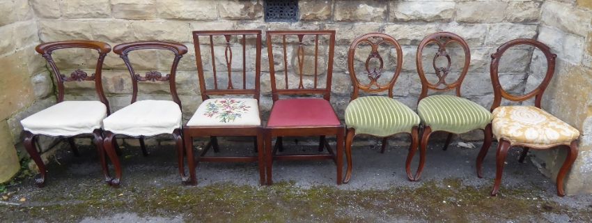 Five Balloon Back Victorian Chairs, including two rosewood & three Fruit-Wood.