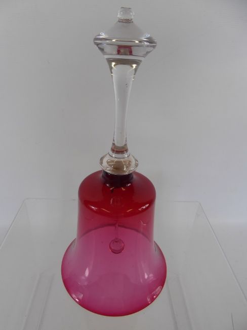 A Victorian Cut Glass Cranberry Bell, approx 27 cms.
