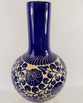 A Taiwanese Baluster Blue and White Vase, the vase of cobalt blue foliate design, approx 46 cms high.