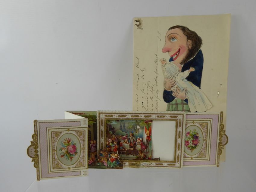 A Bookano Zoo No. 1 Child's Pop Up Book, with two antique card work items. (3)
