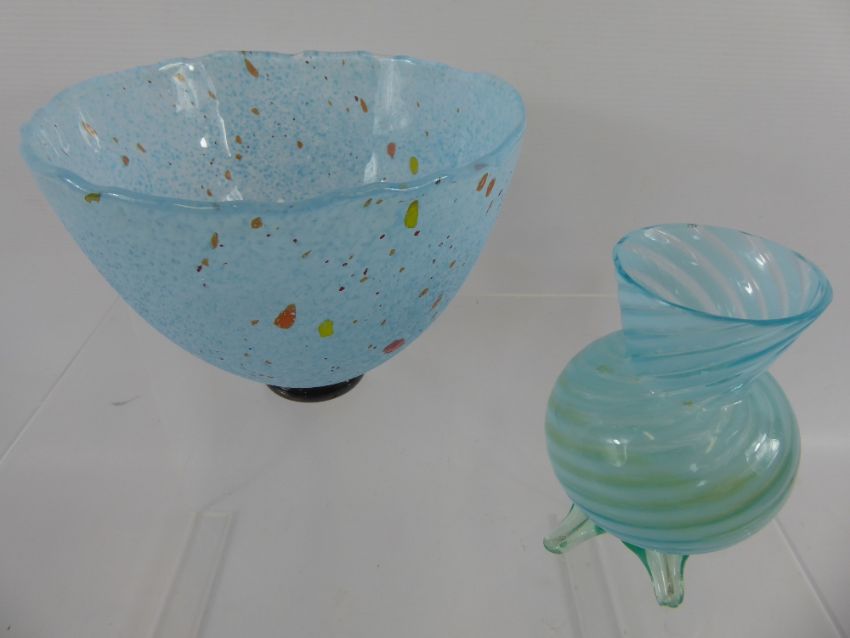 A Vintage Kosta Boda Bowl, etched signature B. Vallien, together with a hand blown glass. (2)