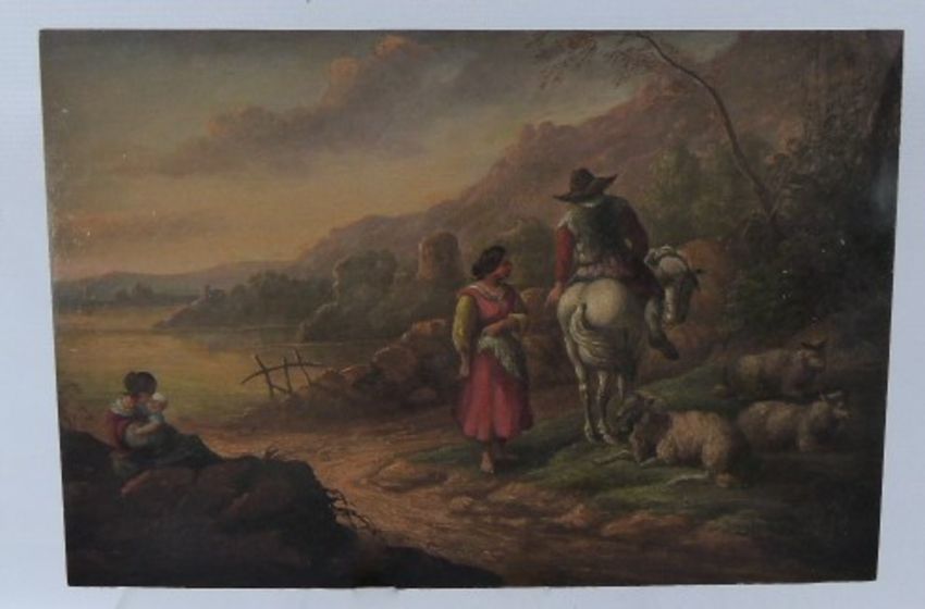 A Continental 18th Century Oil on Board, depicting a scene of farewell, artist unknown, approx 33 x 22 cms, unframed. Provenance: From a family collection of a London gentleman.