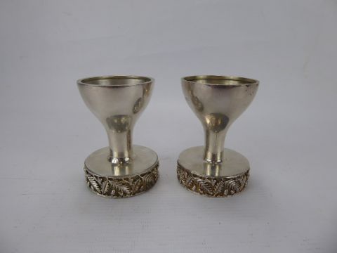 A Pair of House of Lawrian Silver Gilt Candle Holders, London hallmark, dated 1978, decoration with acorn and oak leaf, for Christopher Lawrence.