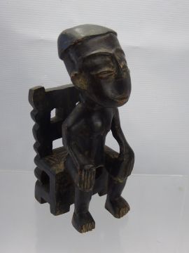A Wood-Carved Tribal Figure depicted seated on a chair (possibly from Ghana), approx 22 cms.