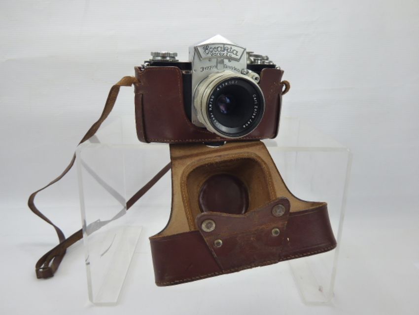 Vintage Cameras, including Ilford Sportsman with a Cassar 1:28/45mm lens, PED Camera, Ilford Sportie Kodak Ritinette, Carl Zeiss jena 8 x 30 Binoculars, Exacta Varex IIa Tessar 2,8/50 lens.