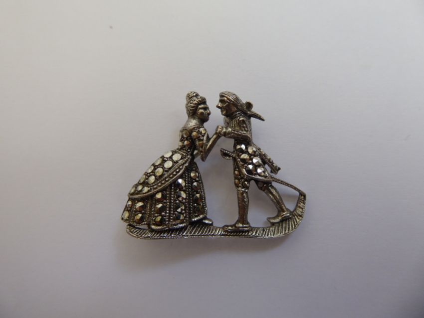 A Silver and Marcasite Brooch, of a couple dancing.