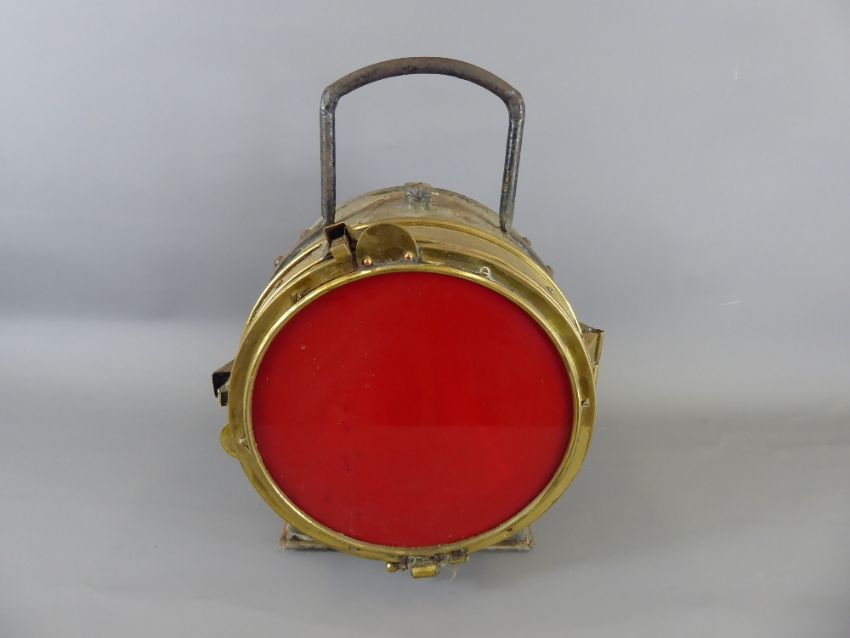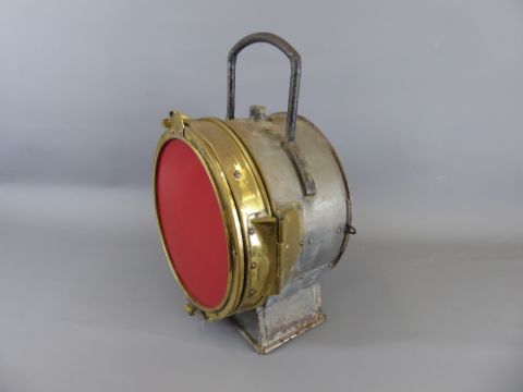 A Vintage Electrical Red Nautical Light, inscribed with 'Poyard Constructeur, Paris'.