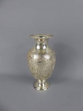 An Antique Silver Persian Vase, ovoid shape with flared neck over the shoulders. Chased and engraved with floral and foliate design, makers mark with purity stamp to base, approx 19 cms