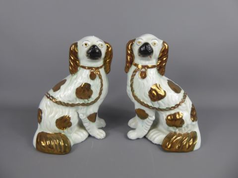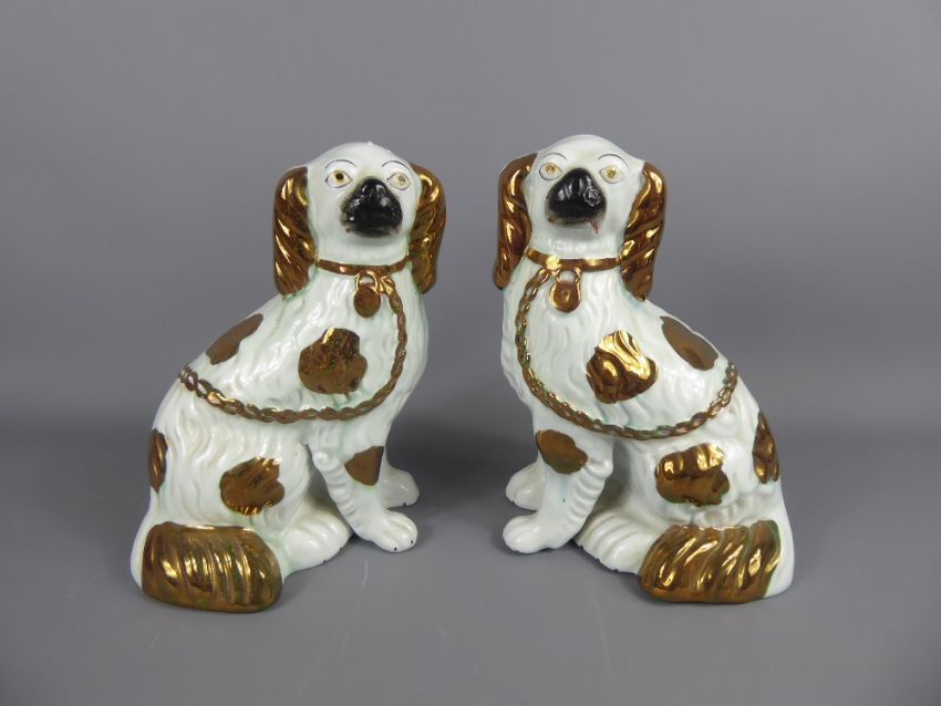A Pair of Staffordshire Pottery Fireside Spaniels, approx 23 cms